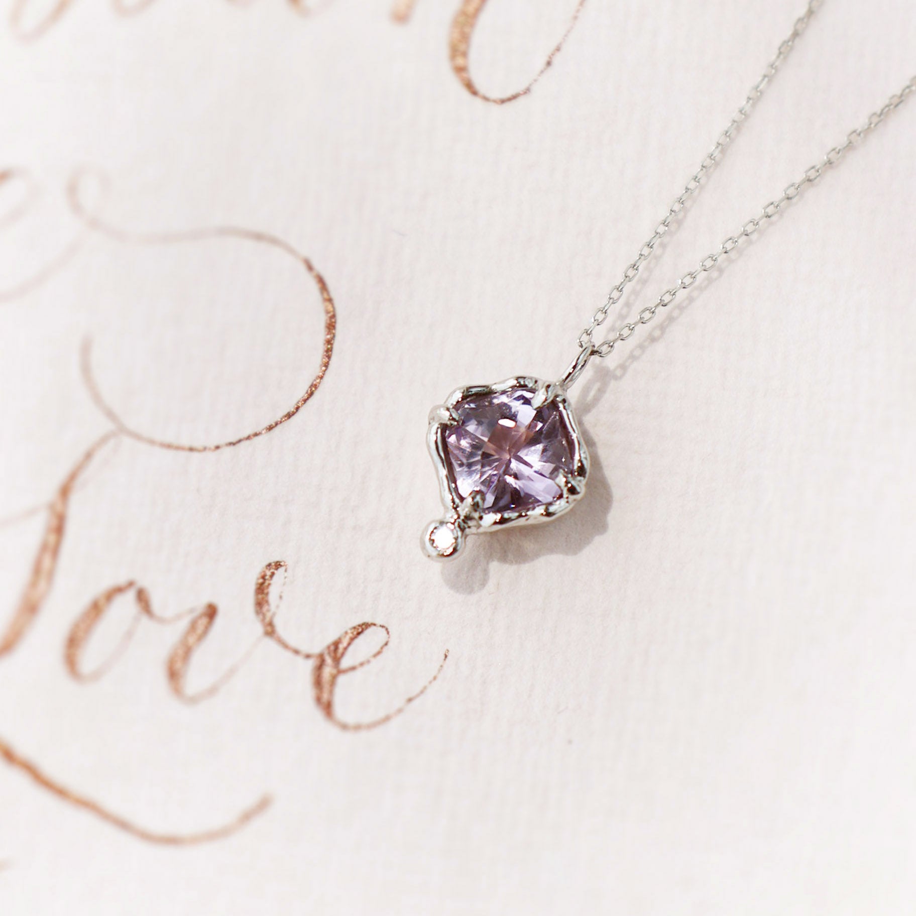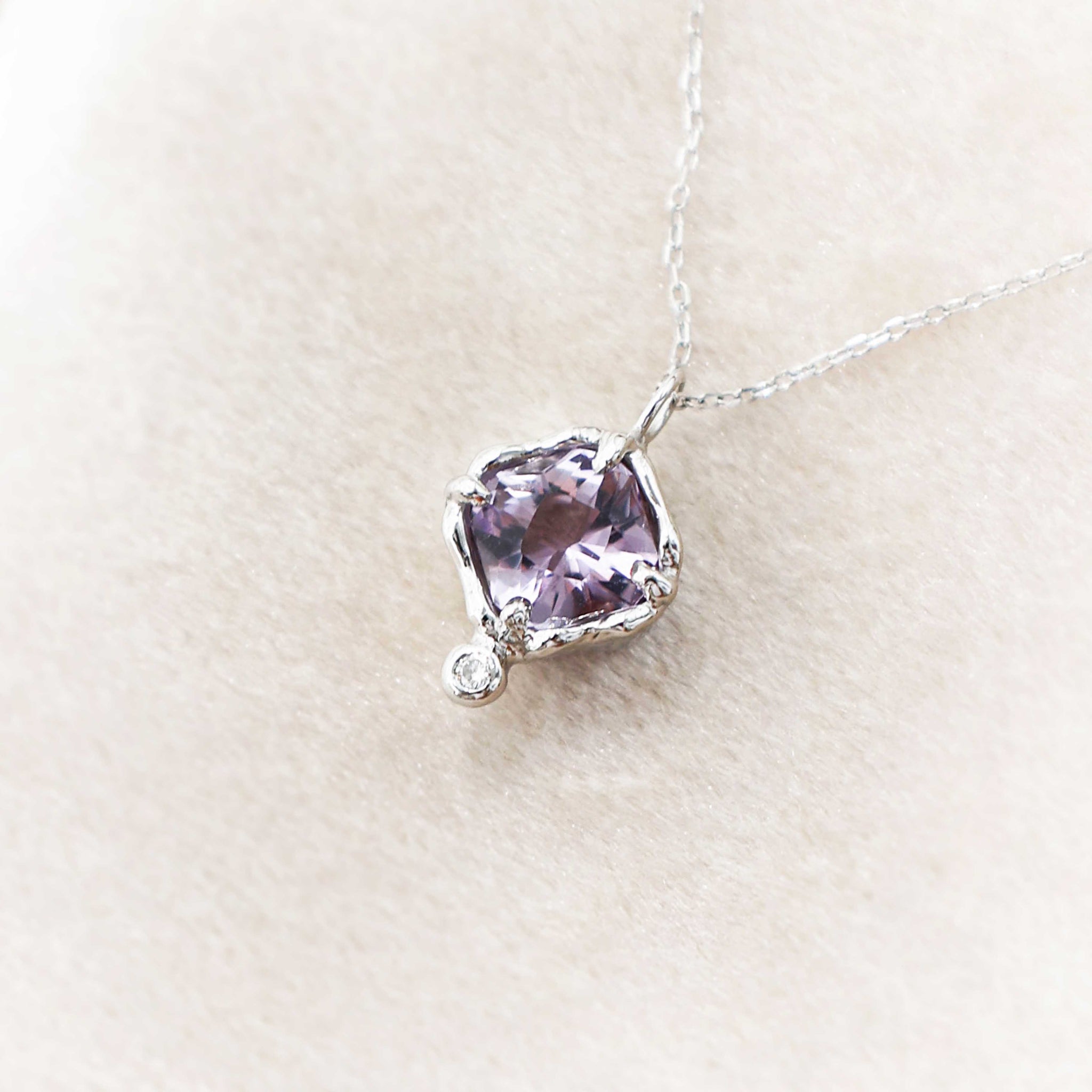 Material : Rose de France amethyst, White Diamond, 14K White Gold